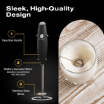 - BARISTA STYLE – Transport yourself to your favorite café every morning with this mini electric frother with stand. Enjoy creating a rich, creamy foam for your hot and cold drinks, just like a professional barista.