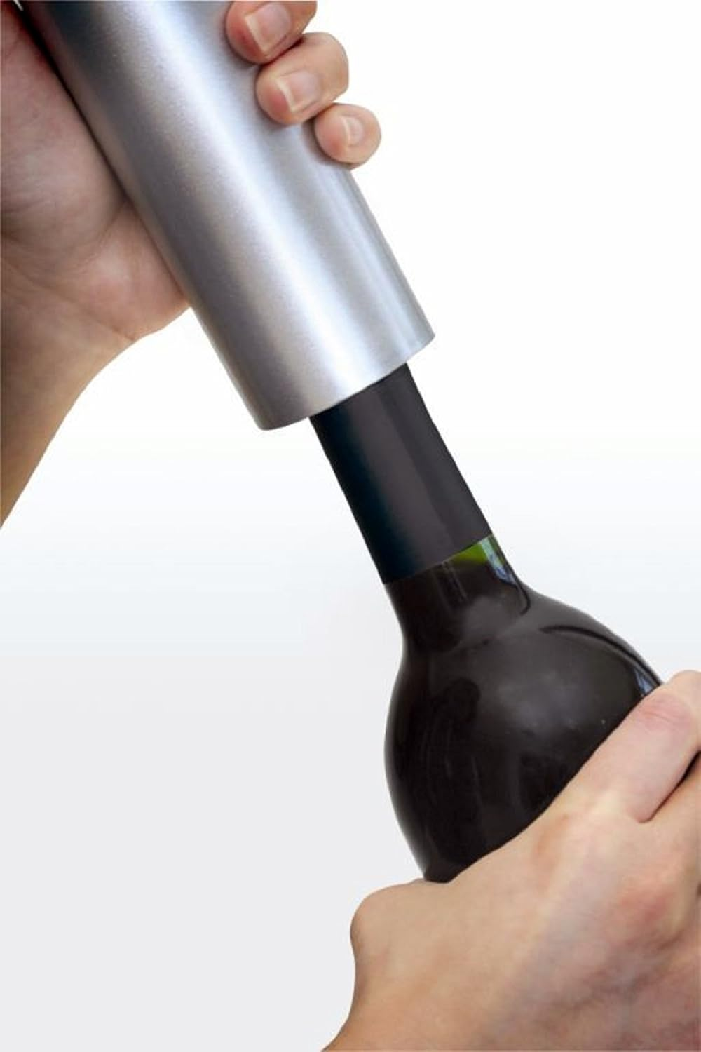 • Opens a bottle of wine in just seconds with push button ease